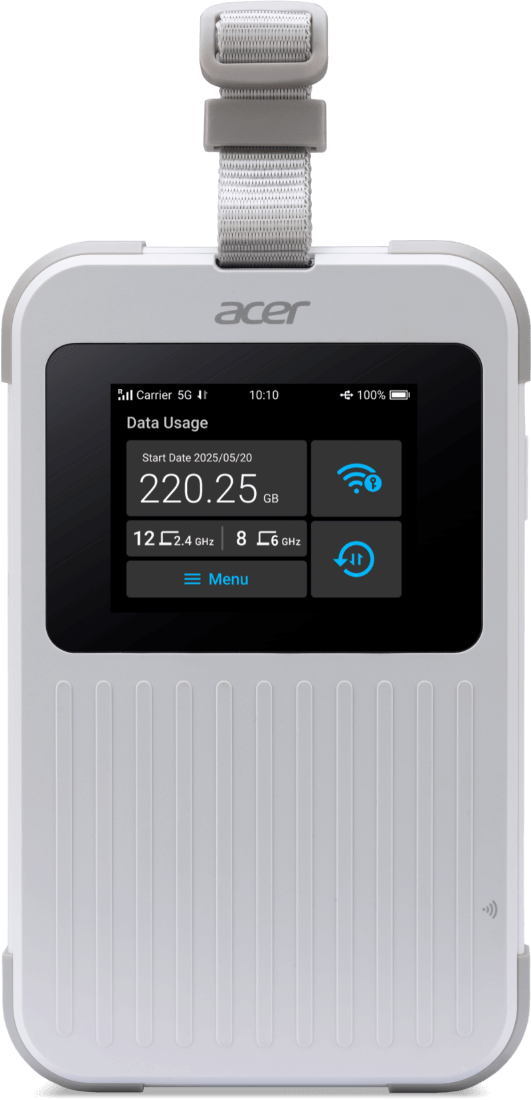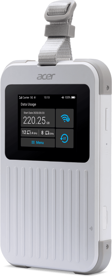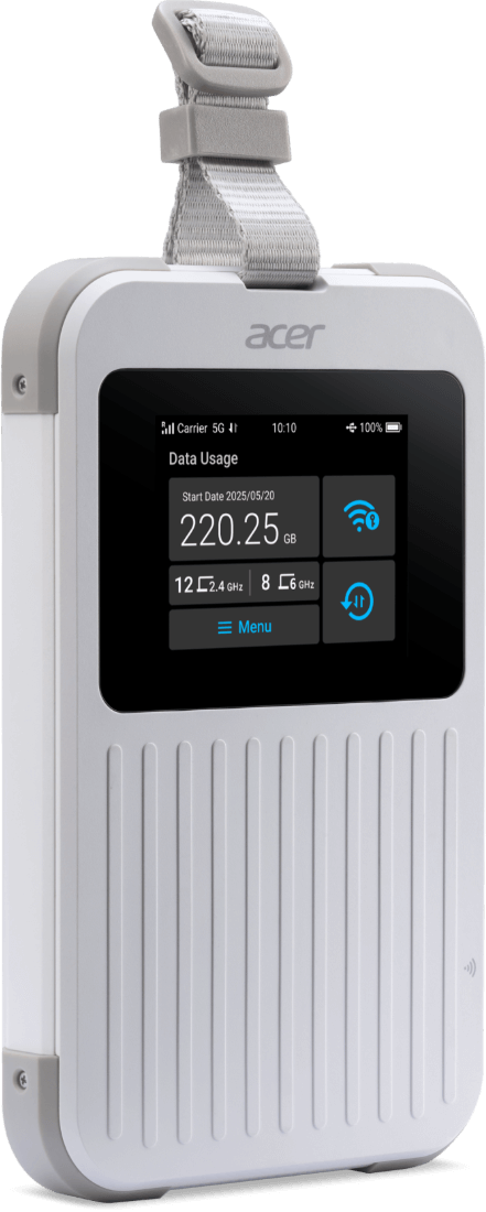 Acer Connect M6E 5G to mobilny router nowej generacji, który zapewnia szybki i stabilny dostęp do internetu wszędzie tam, gdzie go potrzebujesz – bez konieczności korzystania z zewnętrznych sieci Wi-Fi. Wystarczy włożyć kartę SIM, by natychmiast stworzyć prywatny hotspot 5G, idealny na podróże, pracę w terenie, weekendy poza miastem czy jako zapasowe źródło internetu w domu. Dzięki kompaktowej konstrukcji i intuicyjnej konfiguracji, zawsze masz dostęp do bezpiecznej sieci, którą możesz udostępniać wielu urządzeniom jednocześnie.