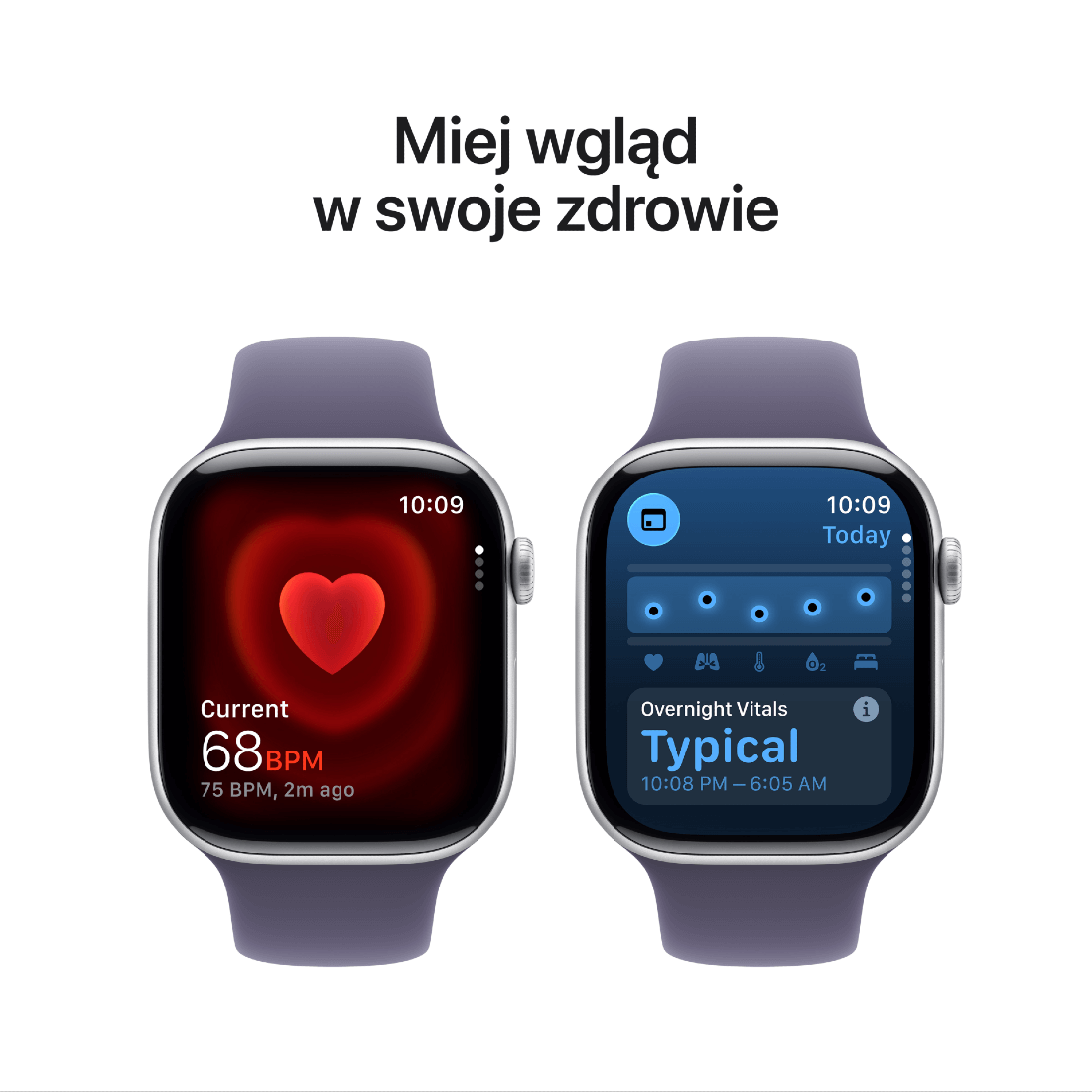 Apple Watch Series 11 to smartwatch, który daje Ci pełniejszy wgląd w zdrowie. Nowa funkcja powiadomień o nadciśnieniu pomaga wykrywać wczesne sygnały problemów1. Zegarek monitoruje sen i prezentuje wynik snu, abyś mógł poprawić jego jakość. Dodatkowo oferuje EKG, pomiary natlenienia krwi, alerty o arytmii i nietypowym tętnie, a także powiadomienia o możliwym bezdechu sennym. Wszystko w jednym urządzeniu, które nosisz na nadgarstku.