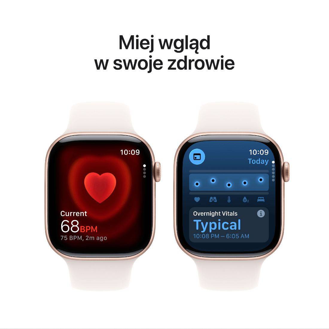 Apple Watch Series 11 to smartwatch, który daje Ci pełniejszy wgląd w zdrowie. Nowa funkcja powiadomień o nadciśnieniu pomaga wykrywać wczesne sygnały problemów1. Zegarek monitoruje sen i prezentuje wynik snu, abyś mógł poprawić jego jakość. Dodatkowo oferuje EKG, pomiary natlenienia krwi, alerty o arytmii i nietypowym tętnie, a także powiadomienia o możliwym bezdechu sennym. Wszystko w jednym urządzeniu, które nosisz na nadgarstku.
