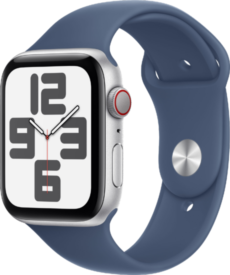 Apple Watch SE GPS + Cellular 44mm Silver Aluminium Case with Denim Sport Band - S/M