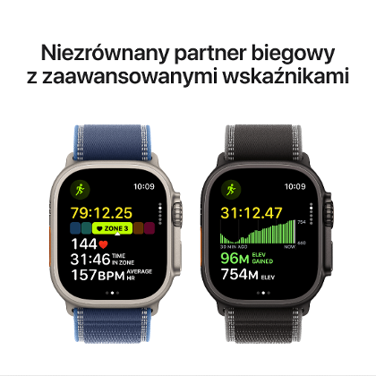 Apple Watch Ultra 3 to centrum monitorowania zdrowia i aktywności. Oferuje GPS o podwójnej częstotliwości, wskaźniki mocy w biegu, strefy tętna i treningi własne. Monitoruje sen, tętno, natlenienie krwi i ostrzega o możliwym nadciśnieniu, arytmii czy bezdechu sennym. Funkcje bezpieczeństwa, takie jak wykrywanie upadków i wypadków, zwiększają poczucie ochrony. Dzięki wbudowanej łączności komórkowej możesz odbierać połączenia, streamować muzykę i korzystać z aplikacji bez iPhone’a.