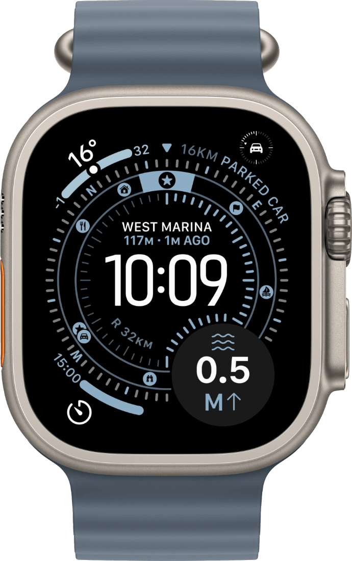Apple Watch Ultra 3 to mistrzowski zegarek stworzony dla sportu i ekstremalnych wyzwań. Wyposażony w kopertę z tytanu i szafirowe szkło, jest odporny na uszkodzenia i wodoodporny do 100 m (zgodnie z normą ISO 22810:2010). Idealny do pływania, nurkowania (do 40 m) i sportów wodnych o dużej prędkości. Dzięki programowalnemu przyciskowi czynności możesz błyskawicznie uruchomić trening, włączyć latarkę lub inne funkcje jednym dotknięciem.
