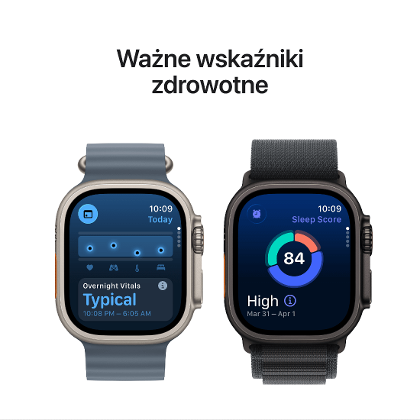 Apple Watch Ultra 3 to centrum monitorowania zdrowia i aktywności. Oferuje GPS o podwójnej częstotliwości, wskaźniki mocy w biegu, strefy tętna i treningi własne. Monitoruje sen, tętno, natlenienie krwi i ostrzega o możliwym nadciśnieniu, arytmii czy bezdechu sennym. Funkcje bezpieczeństwa, takie jak wykrywanie upadków i wypadków, zwiększają poczucie ochrony. Dzięki wbudowanej łączności komórkowej możesz odbierać połączenia, streamować muzykę i korzystać z aplikacji bez iPhone’a.