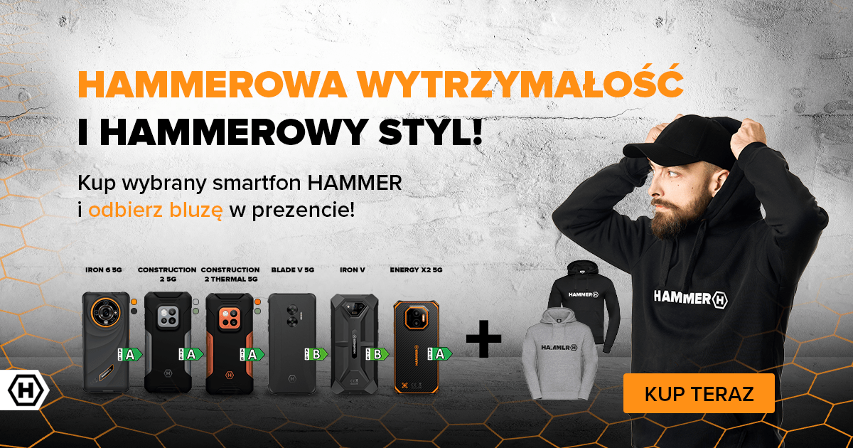 Certyfikaty IP69 i MIL‑STD‑810H, szkło Gorilla Glass 5, aparat 50 Mpix z trybem nocnym, laserowy dalmierz 50 m, Hammer Toolbox oraz duży ekran 6,58" 120 Hz czynią ten smartfon idealnym narzędziem do pracy i survivalu.