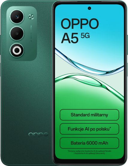 Zasilany przez procesor MediaTek Dimensity 6300 i wspierany przez Trinity Engine, OPPO A5 5G działa płynnie i stabilnie nawet przy intensywnym użytkowaniu. Bateria 6000 mAh zapewnia długie godziny pracy, a ładowanie SUPERVOOC 45 W pozwala odzyskać 30% energii w zaledwie 21 minut. Aparat 50 MP z trybem portretowym, nagrywaniem z dwóch kamer i AI Edytorem pozwala tworzyć treści, które zachwycają. Obsługa w rękawiczkach i tryb plenerowy sprawiają, że to smartfon gotowy na każdą przygodę.