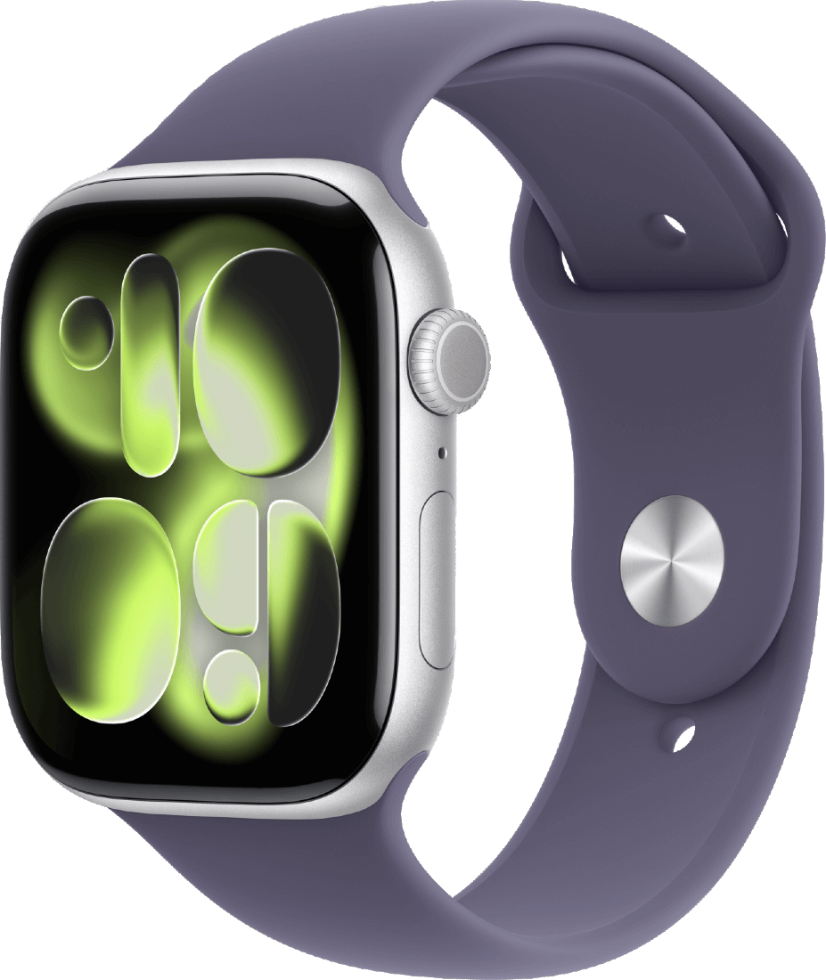 Apple Watch Series 11 GPS + Cellular 46mm Silver Aluminium Case with Purple Fog Sport Band - M/L srebrny