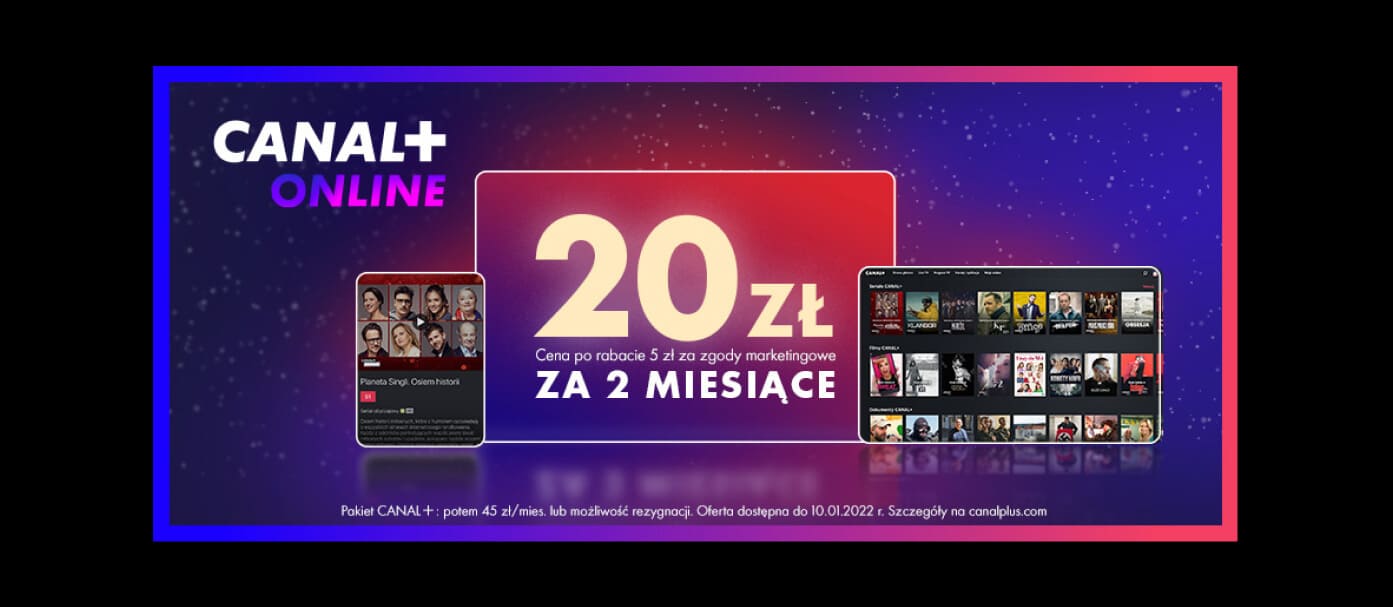 Święta w CANAL+ online Zapłać z Play i skorzystaj ze świątecznej oferty – 2 miesiące dostępu za 20 zł. W serwisie CANAL+ online znajdziesz najlepsze seriale, hity filmowe oraz emocjonujący sport na żywo. Oglądaj co chcesz, gdzie chcesz i kiedy chcesz, na dowolnym urządzeniu.