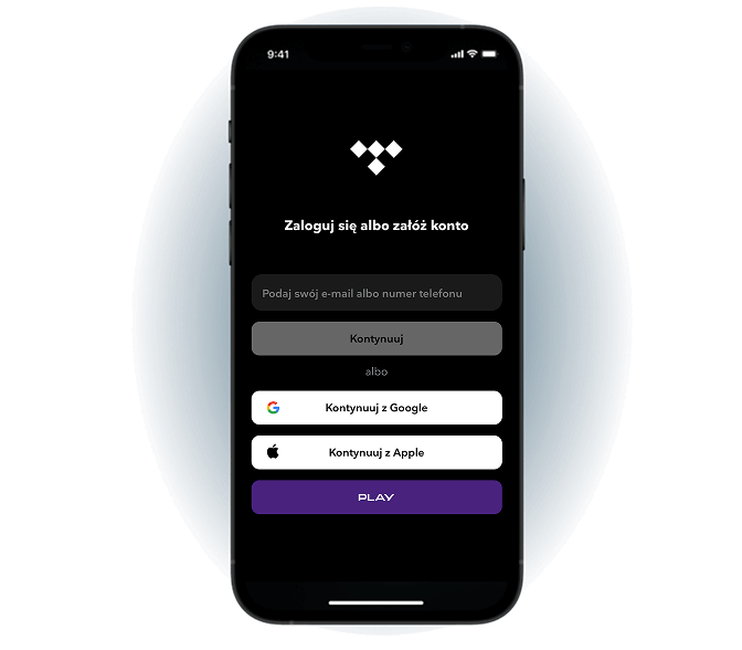Przy logowaniu wybierz Play i wpisz numer telefonu, na którym masz aktywną usługę TIDAL w Play